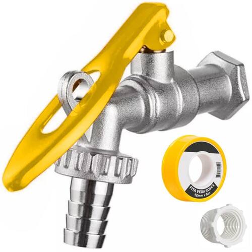 Torneira De Metal Porta Cadeado + Bucha Redução + Veda Rosca