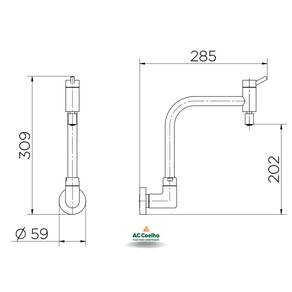 Torneira para cozinha de parede bica móvel 90. Nova Lóggica