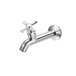 Características - Torneira: Metálica longa de parede resistente, indicada para cozinha ou tanque. - Composição básica: Ligas de cobre, plásticos de engenharia e elastômeros. - Acabamento: Superficial biníquel cromado que proporciona alta resistência à corrosão. - Bitola: 1/2 (DN15). - Arejador: Possui arejador que regula vazão da água, bem como, facilita a filtragem de micro partículas de impurezas, evita respingos na cuba e desperdício de água. - Acionamento: de volta com pastilha cerâmica. - Furo na parede: 25mm a 30mm. - Instalação: Produto de fácil instalação. - Acompanha: Torneira e adaptador de 3/4 (DN20). - Cor: Cromado