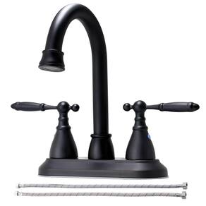 Tipo: Torneira de pia de banheiro preta fosca vintage Acabamento: preto fosco Material do corpo principal: aço inoxidável SUS 304 Material do bico: aço inoxidável SUS 304 Material do cabo: aço inoxidável SUS 304 Válvula: Válvula de cerâmica Característica de água: mistura quente e fria Tipo de instalação: furo duplo (com placa de deck para bacia de 2 ou 3 furos de 4") Altura total: 21 cm - ?Material sem grafite e saudável?A torneira preta da pia do banheiro é feita de aço inoxidável SUS 304 sem grafite, garantindo a você uma água mais limpa e saudável. Permite que você fique longe da água de metal pesado com esta torneira de banheiro. A torneira de banheiro preta fosca tem 7 camadas de processo de tratamento de superfície para protegê-la da ferrugem, corrosão e torná-la antiimpressões digitais. - ?Garantia certificada da torneira?Esta torneira da pia do banheiro está equipada com o cartucho de cerâmica certificado cUPC, que passou 800.000 vezes no teste ON/OFF para garantir o desempenho sem vazamentos e as mangueiras de água certificadas cUPC NSF que atendem aos padrões de alta qualidade dos EUA e do Canadá. Não precisa se preocupar com todos os problemas de vazamento. - ?Bico giratório de 360°?O design de rotação de 360° das torneiras de banheiro com duas alças aumenta a área de limpeza para uso flexível. Torneira de banheiro com 2 alças para controle de fluxo e temperatura sem esforço. Esta torneira de pia de banheiro pode ser usada em muitos lugares, pode ser usada como torneira de banheiro para casa, torneira de banheiro de trailer, torneira de lavanderia, torneira de lavatório e assim por diante. - ?Brilho de superfície duradouro?A torneira de banheiro preta fosca passou no teste de 100 gramas, que pode refletir o efeito de adesão da tinta da superfície. Não é fácil cair da tinta após um longo tempo de uso e maximiza a beleza da torneira da pia do seu banheiro. - ?Instalação de 2 ou 3 furos?Esta torneira de banheiro de 10 cm é projetada para caber em lavatórios de 10 cm de 2 ou 3 furos e é fácil de instalar sozinho, não há necessidade de empregar um encanador! O manual de instalação está incluído na caixa e você também pode entrar em contato conosco para obter ajuda a qualquer momento.