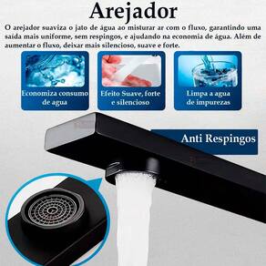 Arejador Econômico e Eficiente: Mistura ar à água para suavizar o jato, reduzindo respingos, tornando o uso mais silencioso e aumentando a economia de água – sem comprometer a performance.