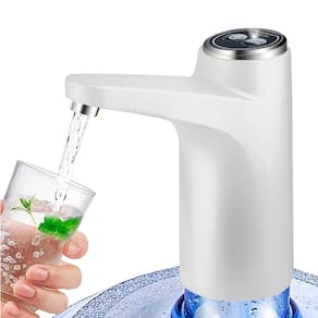 Bomba elétrica para galão de água recarregável bivolt USB com 2 modos de utilização (contínuo e 600ml). Compatível com galões de 5L a 20L. Bateria recarregável com duração de até 3 galões ou 30-40 dias. Recarga em 2-3 horas. Baixo ruído.Água gelada