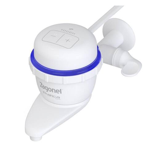Torneira Elétrica Prática Touch Eletrônica 5500W 127V Branca - ZagonelTorneira Prática Touch da Zagonel é o modelo perfeito quando se trata de grande economia de energia, segurança total no ajuste de temperatura e mais praticidade ao seu dia a dia. Ela conta com sistema de proteção contra choque, é compatível com sistema de aquecimento solar e gás e com sistema de proteção diferencial residual, possui uso racional de água. A cor branca da torneira é mais procurado pois se adequa facilmente aos demais itens de decoração.A torneira pratica possui características que inclui tecnologia touch, (água na temperatura certa com um toque), fácil acionamento contendo registro de 1/4 de volta com pastilha de cerâmica dando maior durabilidade,garantia de alta segurança no manuseio. E o grande diferencial é que contém braile na área que aciona a mudança de temperatura. Potência com variação progressiva e linear de temperatura, corpo em termoplástico ou seja, isolante térmico e elétrico. Esse modelo inclui um anel luminoso em LED como indicativo de temperatura. Ela carrega um design diferenciado, sendo a bica com arejador, a torneira não respinga e garante uma economia de água.Sistema Microprocessado.Mais segurança.Temperatura progressiva.Não respinga.Novo arejador.Fácil instalação.Segurança no manuseio.Biga giratória 360º.Registro com 1/4 de volta.Grau de proteção: IP 24.Sistema de Proteção Contra Choque.Dispositivo de Economia racional de Água.Fabricado no Brasil.Compatível com Sistema de Aquecimento Solar e a Gás.Compatível com Sistema Proteção Diferencial Residual (DR).Anel Luminoso como indicativo de temperatura.Braile: Facilidade para a troca de temperatura.Fácil troca de resistência. Ean: 7897273262357