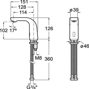 A torneira eletrônica de lavatório de mesa bica baixa L20 Cromado da Roca combina eficiência com design sofisticado. Fabricada em metal cromado, oferece acionamento por corrente alternada que proporciona economia de energia e conforto. Seu design moderno e acabamento cromado são ideais para ambientes comerciais e públicos. Com instalação de bancada, possui acionamento automático, em que o sensor de presença está no corpo da torneira. É perfeito para uso público e o seu funcionamento por energia elétrica bivolt (110/220V) - fonte de alimentação incluída. Acabamento: Cromado Acompanha Arejador: Sim Altura: 12,6 cm Altura Bica: Baixa Altura da Base até a Curvatura do Tubo: 12,6 cm Altura da Base até a Ponta do Arejador: 10,2 cm Altura Total: 12,6 cm Ambiente Principal: Banheiro Bitola: 1/2 Cor: Cromado Cor do Produto: Cromado Cor Predominante: Cinza Diâmetro: 3,9 cm Informações Complementares: Torneira Eletrônica - Bivolt Itens Inclusos: Torneira + Manual de instalação Largura: 4,6 cm Linha ou Coleção: Linha L20 Manual de Montagem e Instalação: https://product-hub-prd.madeiramadeira.com.br/919776/documents/b90ba341-e4b2-4f70-8047-59a8abd4a5602104528494717195788731913.pdf Material Principal: Metal Mecanismo de Vedação: Cerâmica Origem do Produto: Nacional Peso: 2,23 kg Pressão Máxima: 40 mca Pressão mínima: 1,5 mca Profundidade: 15,1 cm Recomendações de Uso, Manutenção e Limpeza: Realizar a limpeza com pano limpo, macio e levemente úmido. Não é recomendado o uso de produtos abrasivos. Tipo de Acionamento: Sensor Tipo de Bica: Fixa Tipo do Arejador: Fixo