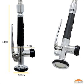 Por ser flexível proporciona versatilidade no manejo do esguicho facilitando o direcionamento do jato auxiliando na higienização de grandes utensílios, além de contribuir para a economia de água;