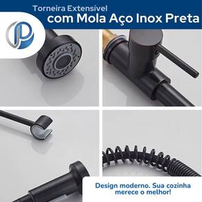 Torneira Extensível com Mola Aço Inox Preta Cor: Preto A Torneira Extensível com Mola Aço Inox é a escolha ideal para quem busca praticidade e estilo na cozinha. Com design moderno e acabamento em aço inox, ela oferece alta durabilidade, resistência à corrosão e um visual sofisticado. Seu bico extensível com mola flexível permite maior liberdade de movimento, ideal para lavar alimentos, encher recipientes ou limpar grandes áreas da pia com facilidade. A rotação de 360º proporciona ainda mais versatilidade, facilitando o uso em pias duplas e otimizando as tarefas do dia a dia. Além disso, conta com dois tipos de jato - contínuo e chuveirinho - que podem ser ajustados conforme a necessidade.