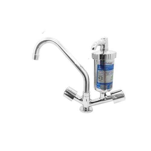 Desenvolvido com matéria de , a Torneira Com Filtro é a opção ideal para quem procura qualidade para sua cozinha. Sua cozinha bonita e elegante, pois seu design moderno, traz um toque de requinte ao ambiente. Além disso, proporciona uma água saudável filtrada na hora, além de garantir uma praticidade maior comparado aos filtros convencionais. Fabricada toda em metal cromado, exceto o copo do filtro, possui alta resistência a riscos e corrosão. DADOS TÉCNICOS: - Copo do filtro e acabamentos em ABS; - Fixação na mesa; - Certificações: INMETRO; - Acabamentos: C40; - : 5 anos contra defeito de fabricação. NOSSA EMBALAGEM: - Torneira de Bica Móvel com Filtro Purificador.