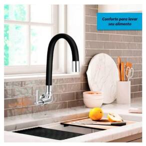 Com revestimento em silicone, oferece excelente performance e eficiência, auxiliando nas práticas do dia a dia. A Torneira Cozinha Preta Flexível proporciona um design autêntico, ideal para cozinhas com um toque de modernidade e elegância.