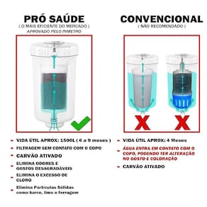 Torneira Gourmet Com Filtro Cozinha De Parede Metal 1/4v. Torneira Gourmet Com Filtro Cozinha De Parede Metal 1/4v. Torneira em metal 3/4 robusta certificado pelo INMETRO, filtro e chuveirinho em ABS, plástico de engenharia altamente resistente. Especificações Pressão Mínima: 4 mts 4 MCA metros de coluna d'água para um bom funcionamento Entrada de água: 1/2 com adaptador para 3/4 Mecanismo de acionamento: metal cerâmico 1/4 volta Filtro: Tecnologia moderna Pró Saúde garante uma filtragem ainda mais eficiente, Certificado Inmetro. Refil: Blindado Água não entra em contato com o copo do filtro Tubo: Gourmet Móvel até 360 Graus Dimensões: Altura posição normal: aproximadamente 28cm : - 90 dias de contra defeito de fabricação e mecanismo de vedação. Observação: Certifique-se de que a foto do produto é o modelo correto para sua instalação Parede ou Bancada . - Recomendações de Uso, Manutenção e Limpeza: Limpar a torneira apenas com um pano macio e sabão neutro. Não usar produtos abrasivos como: sapólio, palha de aço e produtos químicos. Marca: Não Informado Ean: 0074468274921