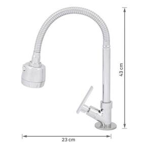 Eleve o padrao de sua cozinha com a Torneira Gourmet Cozinha Bica Alta Flex Cromada Delinia. Com um design elegante e cromado, esta torneira e uma adicao sofisticada a qualquer espaco. Seu material de latao garante durabilidade e resistencia, proporcionando um produto de longa duracao. Com uma altura de 43 cm, largura de 23 cm e profundidade de 8 cm, ela e perfeitamente dimensionada para se encaixar em sua pia de cozinha. A Torneira Gourmet Delinia e equipada com uma bica alta e flexivel que gira 360o, permitindo um alcance de agua maior e facilitando as tarefas diarias. Alem disso, o acionamento da torneira e de 1/4 de volta, o que proporciona um controle mais preciso do fluxo de agua. O tipo de jato de agua e com chuveirinho, ideal para uma limpeza mais eficiente. O arejador fixo incluido ajuda a reduzir o respingo de agua, economizando agua e mantendo sua pia limpa. Esta torneira e indicada para alta pressao, funcionando perfeitamente entre 3,00 mca e 40,00 mca. E ideal para uso em cozinhas, sendo uma excelente escolha para ser instalada na pia. Com uma do fabricante de 120 meses, a Torneira Gourmet Cozinha Bica Alta Flex Cromada Delinia e uma escolha segura e confiavel para a sua casa. Resumo das Caracteristicas: - Marca: Delinia - Produto: Torneira - Local is Indicado s : Pia - Comodo Indicado: Cozinhas - Temperaturas da Agua: Agua Fria - Tensao Eletrica: Sem Tensao Eletrica - Bica: Alta - Mobilidade da Bica: 360o - Flexibilidade da Bica: Flexivel - Tipo do Jato de Agua: com Chuveirinho - Tipo de Torneira: Comum - Tipo de Acionamento Torneira: 1/4 de Volta - Formato do Acionamento Torneira: Alavanca - Acompanha Arejador: Sim - Mobilidade do Arejador: Arejador Fixo - Altura da Base ate a Saida de Agua: 22,00 cm - Profundidade da Torneira: 23,00 cm - Altura: 43,00 cm - Largura: 23,00 cm - Profundidade: 8,00 cm - Diametro do Furo em Polegadas: 1/2 - Pressao Indicada: Alta Pressao - Pressao de Funcionamento Minima: 3,00 mca - Pressao de Funcionamento Maxima: 40,00 mca - Cor: Cromado - Tonalidade: Prata - Material: Metal - Tipo de Material Marca: Não Informado