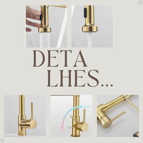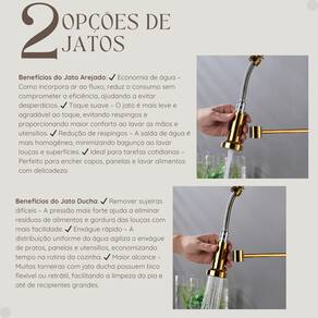 Destaques do Produto: Misturador Monocomando: Controle fácil da água quente e fria com um único manípulo, economizando espaço na bancada. Ducha Flexível: Suporte em mola e alta flexibilidade para lavar alimentos e utensílios com mais praticidade e segurança. Bica Giratória 360°: Maior alcance e agilidade para limpar grandes recipientes e manusear utensílios na pia. Arejador : Fluxo de água eficiente, que economiza e proporciona mais conforto no uso. Design Resistente e Elegante: Fabricada em metal e plástico ABS, com acabamento dourado Brilhoso, ideal para cozinhas de qualquer estilo.