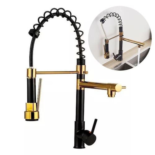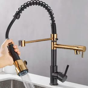 Torneira gourmet 2 saídas preta e dourada brinovar O misturador monocomando para cozinha, é ideal para você que quer unir praticidade e conforto com modernidade e sofisticação em uma só torneira. Através de um fácil comando, mistura-se água quente e fria, o que facilita encontrar a temperatura ideal e aumenta a vida útil da torneira. Versátil, este produto pode ser apenas com água fria com a ajuda de uma conexão t na instalação . Especificações técnicas: Marca: brinovar Cor: preto e dourado Acabamento: preto fosco e dourado cromado brilhante Material: aço inox 304 Modelo: 2 saídas de bancada Indicação: cozinha / espaços gourmet / ilhas / churrasqueiras Instalação: bancada / pia Sistema: monocomando Bica: móvel e giratória com rotação 360 graus Quantidade de saídas de água: 2, torneira ducha e torneira para filtro filtro não incluso Jato de água: bica giratória aerado e bica móvel ducha gourmet com acionamento através do botão Arejador: sim Altura: 51 cm Largura: 4,5 cm Comprimento total: 26,5 cm Temperatura mínima da água: 5 celcius Temperatura máxima da água: 75 celcius Utilização somente com água fria: sim, necessário a utilização de adaptador 't' não incluso Aquecedor compatível com a torneira: elétrico, solar e gás não incluso Pressão mínima da água: 3mca metros de coluna dágua Pressão máxima da água: 40mca metros de coluna dágua Pressão ideal da água: acima de 5mca metros de coluna dágua Cartucho: cartucho cerâmico de alta durabilidade 500.000 ciclos Perfuração da bancada: 3,5 cm Rosca: 3 cm : 90 dias Atenção: o produto não acompanha filtro, apenas a torneira para o filtro Cuidados: Não use palha de aço, produtos químicos, não usar ácido muriático, água sanitária ou qualquer outro solvente para a limpeza. Limpe periodicamente o seu produto apenas com um pano macio, água e sabão neutro. Para manter o brilho do seu produto recomendamos o uso da pasta para polir e remover manchas em superfícies de aço inoxidável. Itens inclusos: Torneira monocomando 2 saídas Mangueira flexível de aço trançado 50cm para ligação de água quente e fria Sistema de fixação Anéis de vedação Marca: Não Informado