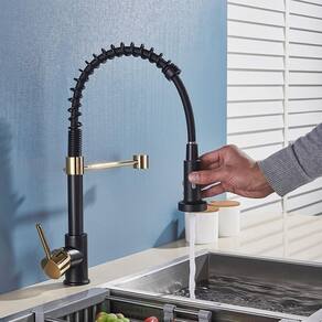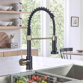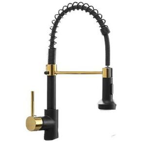 Torneira De Cozinha Gourmet Com Ducha Spray Preta Dourada