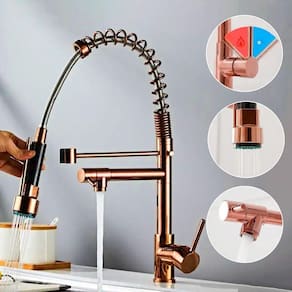 Torneira gourmet 2 saídas rosé brinovar O misturador monocomando para cozinha, é ideal para você que quer unir praticidade e conforto com modernidade e sofisticação em uma só torneira. Através de um fácil comando, mistura-se água quente e fria, o que facilita encontrar a temperatura ideal e aumenta a vida útil da torneira. Versátil, este produto pode ser apenas com água fria com a ajuda de uma conexão t na instalação . Especificações técnicas: Marca: brinovar Cor: rosê Acabamento: cromado brilhante Material: aço inox 304 Modelo: 2 saídas de bancada Indicação: cozinha / espaços gourmet / ilhas / churrasqueiras Instalação: bancada / pia Sistema: monocomando Bica: móvel e giratória com rotação 360 graus Quantidade de saídas de água: 2, torneira ducha e torneira para filtro filtro não incluso Jato de água: bica giratória aerado e bica móvel ducha gourmet com acionamento através do botão Arejador: sim Altura: 51 cm Largura: 4,5 cm Comprimento total: 26,5 cm Temperatura mínima da água: 5 celcius Temperatura máxima da água: 75 celcius Utilização somente com água fria: sim, necessário a utilização de adaptador 't' não incluso Aquecedor compatível com a torneira: elétrico, solar e gás não incluso Pressão mínima da água: 3mca metros de coluna dágua Pressão máxima da água: 40mca metros de coluna dágua Pressão ideal da água: acima de 5mca metros de coluna dágua Cartucho: cartucho cerâmico de alta durabilidade 500.000 ciclos Perfuração da bancada: 3,5 cm Rosca: 3 cm : 90 dias Atenção: o produto não acompanha filtro, apenas a torneira para o filtro Cuidados: Não use palha de aço, produtos químicos, não usar ácido muriático, água sanitária ou qualquer outro solvente para a limpeza. Limpe periodicamente o seu produto apenas com um pano macio, água e sabão neutro. Para manter o brilho do seu produto recomendamos o uso da pasta para polir e remover manchas em superfícies de aço inoxidável. Itens inclusos: Torneira monocomando 2 saídas Mangueira flexível de aço trançado 50cm para ligação de água quente e fria Sistema de fixação Anéis de vedação Marca: Não Informado Ean: 7893070828352