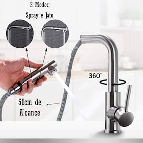 - Giratória e Flexível: A torneira possui o corpo com a capacidade de rotação de 360º e o bico extensível em até 50cm, facilitando a lavagem;
