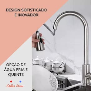 Torneira gourmet elegante e de excelente qualidade. Acabamento perfeito, oferece praticidade no dia a dia. Com misturador monocomando de água quente e fria, proporciona a temperatura ideal.