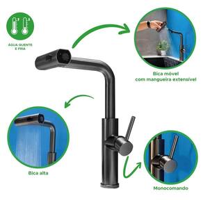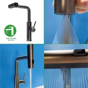 Torneira monocomando para lavatório com bica móvel e giratória de 1080, proporciona mais flexibilidade e praticidade no uso diário. Possui três opções de jato para atender diferentes necessidades, desde um fluxo suave até um mais intenso. O design moderno e elegante combina com diversos estilos de ambiente. Conta com um mecanismo de acionamento prático e eficiente, garantindo controle preciso da temperatura e do fluxo de água. Especificações Técnicas: - Tipo: Torneira para lavatório - Temperatura da água: quente e fria - Acionamento: Monocomando - Bica: Móvel e giratória 1080 - Altura da Bica: alta - Opções de jato: 3 - Uso: Banheiro e Lavatório - Instalação: Sobre a pia - Cor/acabamento: Preto, Cinza e Prata - : 5 anos Marca: Não Informado