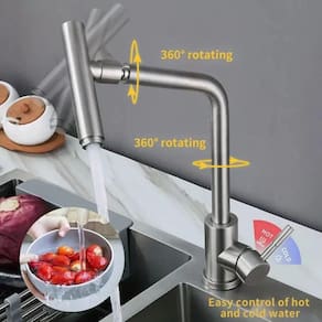 Detalhes: - Em Aço Inox de alta qualidade e acabamento. - Função: Monocomando (Misturador de água quente e fria). - Tipo de Fechamento: Cerâmico. - Abertura 1/4 de volta (500.000 ciclos) - Medida da Furação (pedra ou bancada): De 3,2cm até 4 cm de diâmetro. - Pressão Mínima Recomendada: 4 MCA - Pressão Máxima: 1,6 MPA. - Ângulo de Giro: 360º (haste e bico) - Com Aerador. - Dimensões: 25 x 41 cm (L x A). - Peso: 1 Kg. - Acompanha dois tubos flexíveis (água quente e fria), medida total 60 cm. - Certificado CE, TSE, ISO9001