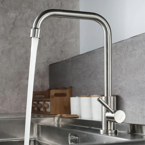 Torneira Inox Escovado De Bancada Mesa Cuba Para Cozinha Bica Alta Design vanguardista pensado para você O controle moderno, durável e fácil de instalar. Permitirá que você opere a abertura e o fechamento do fluxo com apenas uma mão. Economize água, evite salpicos O arejador torna a saída de água espumosa, lisa e com menos pressão; isso minimiza salpicos e permite uma economia de água de até 30%. Não é legal?