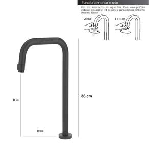 - Controle de vazão através do arejador. Design Clean e Sofisticado. - Torneira fabricada em metal latão alta resistência e durabilidade, proporcionado um custo beneficio sem igual. - Pintura eletroestática, não desbota e não descasca.