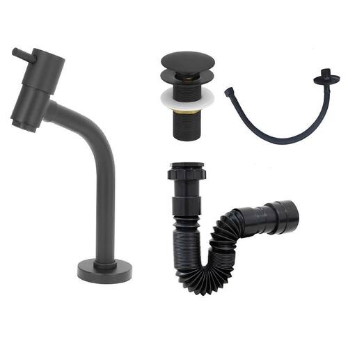 KIT Black Torneira Lavatório Link Preto Black + Flexível + Válvula Click + Sifão