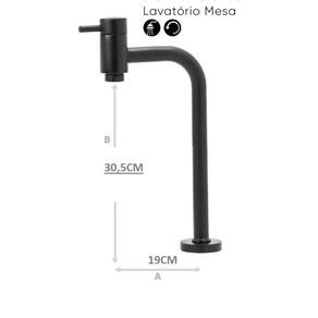 Torneira para lavatório para cuba de sobrepor bica 90 graus média Ref.3132 maltura total da torneira: 30,5 cm. Medida b altura ate a saida da agua da torneira: 24,1 cm. Medida a profundidade 15,7cm Torneira toda em metal com pintura eletrostatica Mecanismo de 1/4 de volta cerâmico.