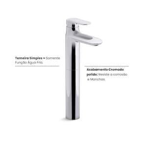 Torneira Lavatorio Kumin Bica Alta Kohler Cromado - Características Gerais do Produto: Fabricante: Kohler Linha: Kumin Referência: 99453BR-4ND-CP : 15 Anos Material: ABS Cromado Cor: Prateado Cor e Acabamento: Cromada Local de Uso: Bancada Tipo: Torneira Simples Compatível com Sistemas de Aquecimento: Sim Tipo da Bica: Fixa Marca: Não Informado Ean: 0885612450920