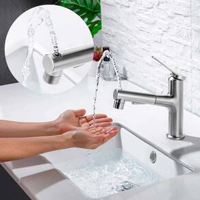 A torneira para lavatório monocomando bica móvel 1080º da kokay possui um design moderno e funcional. Com mangueira extensível embutida, pode alternar entre os jatos spray, chuveirinho e enxágue, além de controlar a temperatura e vazão da água com um único movimento, proporcionando maior conforto e praticidade na utilização. A torneira confere elegância e sofisticação ao ambiente, sendo feita de material resistente e durável. A instalação é simples e rápida, e a torneira é compatível com diversos tipos de lavatório. Você vai se surpreender com a qualidade e o desempenho desse produto. Kokay: um mundo de facilidades para você.