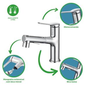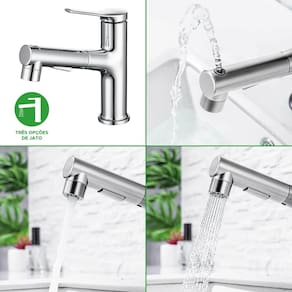 Torneira para lavatório, monocomando, bica móvel com 3 opções de jato - inox Marca: Não Informado