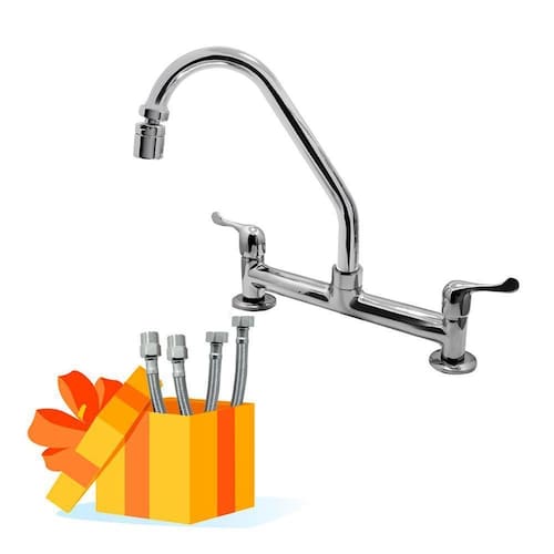 Desenvolvido com material primeira de qualidade, o misturador para cozinha água quente e fria é a opção ideal para quem busca um modelo com design tradicional e com muito glamour. O sistema de comando duplo possui dois volantes: um para água quente e outro para água fria. Permitirá que você escolha a temperatura de forma prática e simples, sendo que o usuário controla a vazão de água e controla a mistura de água quente com água fria. Fabricado em latão, possui alta resistência a riscos e corrosões. Além disso, toda a linha luxo possui um design moderno o que a torna um bonito objeto decorativo, trazendo um toque de requinte e sofisticação para sua cozinha. Este misturador possui mecanismo 1/4 de volta cerâmico, que ajuda a reduzir o consumo de água, aumentando a rapidez de abertura e fechamento. Para manutenção e limpeza usar apenas pano macio e sabão neutro. Não usar produtos abrasivos como sapólio, palha de aço e produtos químicos. Especificações técnicas: - marca: shop hidraulica - material; corpo metal; volante metal - mecanismo: 1/4 de volta - posição de instalação: mesa - bitola: 1/2 - distância do furo para instalação: 20 cm - pressão mín.: 2 m.C.A - pressão máx.: 40 m.C.A - vazão mín.: 4 l/m - vazão máx.: 16 l/m - suporta até 70º c de temperatura - tubo bica móvel com arejador articulado móvel - certificação: pbqp-h - : 5 anos defeito de fabricação Engate mangueira flexível malha de aço 60cm trançado quente e fria O engate mangueira flexível trançado aço inox, indispensável para a instalações de torneiras, caixas acopladas, o engate malha de aço é um equipamento que não pode faltar na cozinha, banheiro ou lavanderia da sua casa, produzido em aço inoxidável, possui grande resistência para alta pressão, e por ser flexível, adapta-se a qualquer tipo de instalação com muita facilidade. Utilizado para a ligação entre a rede hidráulica e a torneira, é produzido em malha de aço inox, um material de grande resistência e durabilidade que confere alto padrão à peça. Por ser flexível, adapta-se a qualquer tipo de instalação, este modelo é uma ótima escolha para garantir o bom funcionamento de suas torneiras, tolerando uma temperatura de uso até 70ºc. Especificações técnicas do produto e -marca: shophidraulica -tipo: engate mangueira flexível -material: malha de aço inoxidável -comprimento: 60cm -bitola entrada água: 1/2 polegada -utilização: conexões de torneiras ou caixas acopladas Marca: Não Informado