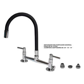 torneira Misturador com saida universal para purificadores. Sua rosca de 5/8' 19 fios acompanha adaptadores de 3/8' - 1/2' - 1/4'. servindo em purificadores de diversos modelos e marcas.