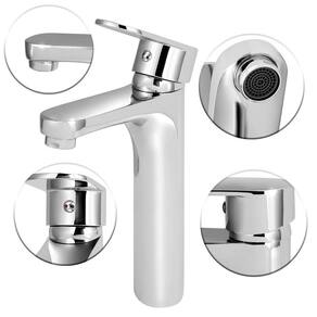 Torneira misturador monocomando banheiro alta metal cromado Torneira misturador monocomando banheiro alta metal cromado A torneira monocomando alta para banheiro. Projetada para uso em banheiros e lavabos, combina com variados estilos de decoração, pois seu design é minimalista. Por se tratar de uma torneira de bica baixa, é compatível com cubas de encaixe, semi encaixe, sobrepor e esculpidas. A torneira contém um misturador monocomando, o qual pode ser conectado à água quente e fria permitindo o controle de vazão e temperatura através de um único acionamento. Alternativamente, é possível adaptá-la também para uso apenas com água fria. Os acessórios necessários para sua fixação encontram-se dentro da embalagem, assim como duas mangueiras flexíveis para conexão nas saídas de água quente e fria na parede, bem como dois conectores metálicos para ligar as mangueiras nas saídas de água na parede. O aquecimento da água deve ser realizado antes da torneira, seja ele através de aquecedor solar, a gás ou elétrico. Para os casos onde há apenas água fria, essa torneira é igualmente recomendada, bastando apenas instalar um t plástico ou metálico na saída de água da parede, ao qual seriam conectadas ambas as mangueiras que acompanham o produto. Instruções de limpeza Não utilizar materiais abrasivos (lado áspero de esponjas, palhas de aço, escovas de cerdas duras. Não usar produtos químicos que contenham amoníacos, saponáceos, desengordurantes, solventes, álcool ou cloro. Para garantir uma boa limpeza, utilize produtos próprios para inox como pasta de polir, detergente neutro ou misturas caseiras que também são bastante eficientes. Além disso, a limpeza constante é fundamental para evitar a utilização de produtos químicos mais fortes para dissolver a sujeira acumulada.