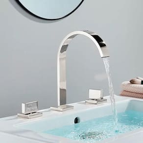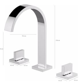 Torneira Misturador moderna para seu banheiro, em linhas retas e limpas, com vazão em forma de jato laminar. Funcionamento perfeito em baixa e alta pressão. Fácil de instalar, é um produto completo que acompanha: parte bruta registros e peças cromadas, bicas e registros de acionamento, peças para fixação.