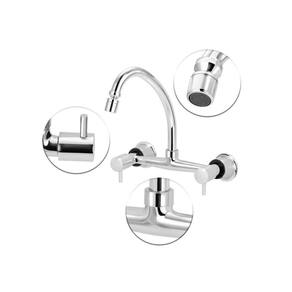 Torneira Misturador Parede Cozinha Arejador Art.Cromado 1/4v Torneira Misturador Parede Cozinha Arejador Art.Cromado 1/4v Este misturador duplo comando oferece para a sua cozinha beleza e requinte, trazendo modernidade e elegância para o ambiente. Com 2 comandos independentes, possibilita controlar a vazão, misturando água quente e fria com conforto e facilidade. Um produto inovador de alta qualidade e com a cor que você sempre sonhou para dar um toque especial na sua cozinha Mecanismo de vedação cerâmico. 1/4 de volta. Bica movel com arejador articulado. Rapidez no acionamento e fechamento, proporcionando economia de água. Além disso, permite a utilização de cuba dupla. Temperatura máxima de 70 c. DETALHES TÉCNICOS - Bica Movel arejador articulado; - Tipo de mecanismo: 1/4 de volta cerâmico; - Fácil instalação e manutenção; todos os nosso misturadores possui Medida padrão de 20,5 cm de centro a centro. E para conexão de parede possui o excêntrico para pequenos ajustes. 19 a 21,5 ele atende. MEDIDAS - Altura total 25 cm - Altura da saída de agua ate os comando de abrir e fechar é de 14 cm - Profundidade 18 cm - 03 meses de contra defeito de fabricação e mecanismo de vedação. . - Recomendações de Uso, Manutenção e Limpeza: Limpar a torneira apenas com um pano macio e sabão neutro. Não usar produtos abrasivos como: sapólio, palha de aço e produtos químicos. Marca: Não Informado Ean: 0074468275010