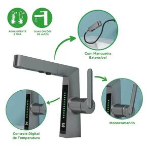 Torneira para lavatório, monocomando, com bica móvel, controle de temperatura e 2 opções de jato Marca: Não Informado