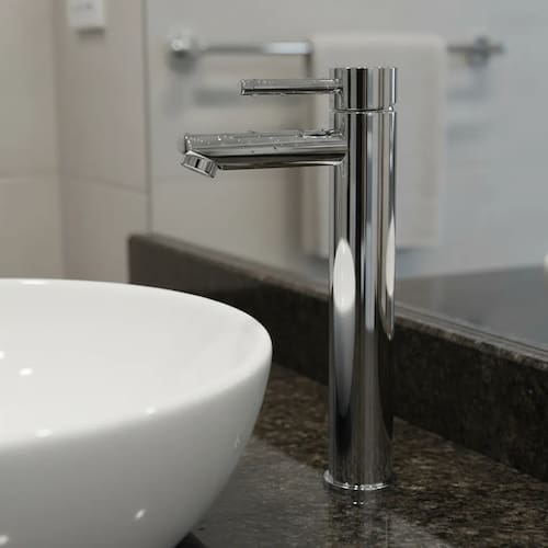 Fabricada em aço inoxidável cromado, essa torneira oferece alta resistência à corrosão e aos desgastes do dia a dia, mantendo sua aparência brilhante e elegante por muito mais tempo. A bica alta facilita o uso, oferecendo mais espaço e permitindo um fluxo de água eficiente e preciso. Ideal para lavatórios de mesa, ela proporciona maior praticidade, especialmente em ambientes compactos.
