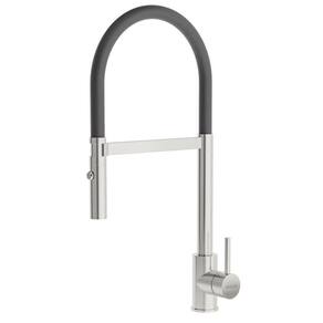 O misturador monocomando Versatille Black em aço inox com mangueira de silicone preto é a escolha perfeita para a sua cozinha. Com um design elegante e acabamento escovado, este monocomando em aço inox traz sofisticação e durabilidade para o seu ambiente. Sua mangueira de silicone preto flexível proporciona maior praticidade e facilidade no manuseio. Além disso, a bica e o corpo giratório permitem uma abrangência de 0º a 360º, oferecendo mais comodidade durante o uso. Com dimensões de 134 milímetros de largura e 530 milímetros de altura, este misturador é ideal para todas as necessidades da sua cozinha. Ele também suporta água fria e quente, com temperatura máxima de 90º, atendendo às suas preferências. Com sistema anti gotejamento, você não precisa se preocupar com desperdício de água Marca: Não Informado