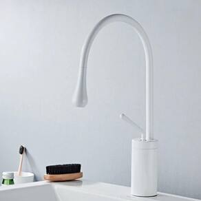 Corpo de cobre, cabo de cobre, tubo de saída de cobre, bico de cobre, superfície pintada de branco, tubo parafuso de cobre, peças de fixação de cobre, com duas mangueiras de aço inoxidável 304 de comprimento 60CM, porca G1 / 2 material 304, conector de núcleo de cobre M10