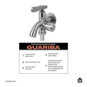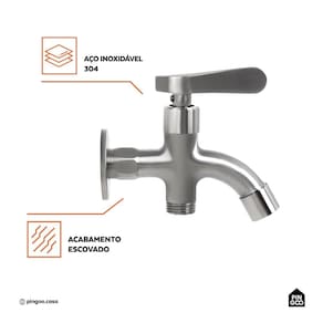 Produzida em aço inox 304, é resistente à corrosão e garante durabilidade no uso diário. Além disso, apresenta funcionamento perfeito em baixa e alta pressão. A saída secundária oferece fluxo constante de água e compatibilidade com mangueiras de máquina de lavar, sem interferir no uso do tanque.