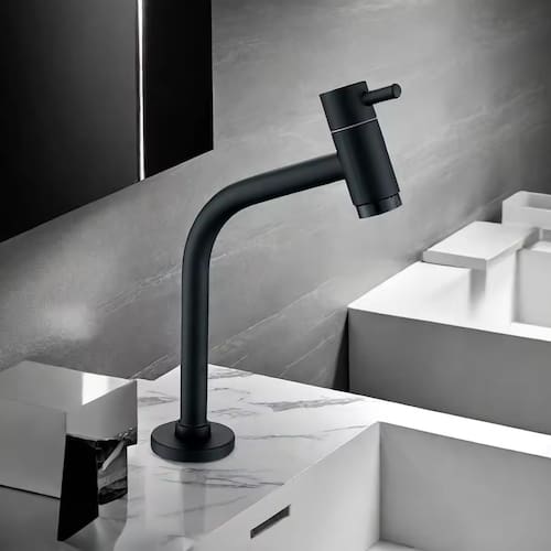 A cor preta é sinônimo de elegância e modernidade. A Torneira Alta Preta se destaca como um elemento de design que se adapta a qualquer estilo de decoração, desde o minimalista até o mais luxuoso. Com seu acabamento impecável, ela traz um toque de refinamento e personalidade ao seu banheiro, transformando-o em um espaço sofisticado e acolhedor.