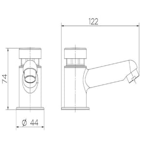 - Comprimento do produto: 122 mm - Altura do produto: 74 mm - Largura do produto: 44 mm - Diâmetro do furo para instalação: 35 mm