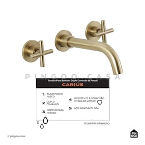 A sensação de adquirir um produto de qualidade com funcionamento exemplar é recompensadora. Pensando nisso, trazemos o Misturador Duplo Comando de Parede Cariús da Pingoo.casa, ideal para você que quer unir praticidade e conforto com modernidade e sofisticação em uma só torneira. Além do seu design rebuscado, ele oferece atributos além da beleza, que são indispensáveis para a sua utilização. O cartucho duplo comando permite a precisa regulagem da vazão e da temperatura da água em duas alavancas, já o arejador além de garantir economia de água, evita respingos e proporciona conforto para as mãos, e o volante assegura maior leveza na abertura e no fechamento com funcionamento é perfeito em baixa e alta pressão.Outra vantagem que merece destaque é que você pode lavar as mãos e escovar os dentes, sem se preocupar com o inverno rigoroso. E no verão, utilizar a água fria. São duas opções de temperatura, em apenas uma torneira.O Misturador Duplo Comando de Parede Cariús, tem detalhes que fazem toda diferença no seu banheiro e o deixa com um toque a mais de requinte e elegância, que vai muito além do conforto térmico.Especificações:Marca: Pingoo.casaDimensões: Verificar nas Imagens do anúncio.Material Predominante: Corpo em Aço inox e bico em ABS.Pressão: 5 a 40 mcaSistema: Duplo ComandoArejador: SimCartucho Cerâmico: SimAplicação: Banheiro ou LavaboInstalação: ParedeItens inclusos:Misturador Duplo Comando de Parede CariúsAnéis de VedaçãoSistema de fixação Ean: 7898689038901
