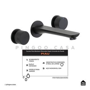 A sensação de adquirir um produto de qualidade com funcionamento exemplar é recompensadora. Pensando nisso, trazemos o Misturador Duplo Comando de Parede Piau da Pingoo.casa, ideal para você que quer unir praticidade e conforto com modernidade e sofisticação em uma só torneira. Além do seu design rebuscado, ele oferece atributos além da beleza, que são indispensáveis para a sua utilização. O cartucho duplo comando permite a precisa regulagem da vazão e da temperatura da água em duas alavancas, já o arejador além de garantir economia de água, evita respingos e proporciona conforto para as mãos, e o volante assegura maior leveza na abertura e no fechamento com funcionamento é perfeito em baixa e alta pressão.Outra vantagem que merece destaque é que você pode lavar as mãos e escovar os dentes, sem se preocupar com o inverno rigoroso. E no verão, utilizar a água fria. São duas opções de temperatura, em apenas uma torneira.O Misturador Duplo Comando de Parede Piau, tem detalhes que fazem toda diferença no seu banheiro e o deixa com um toque a mais de requinte e elegância, que vai muito além do conforto térmico.Especificações:Marca: Pingoo.casaMaterial Predominante: Corpo em Aço inox e bico em ABS.Misturador: Sim (Água Quente/Fria) *Também pode ser usada só com agua fria.Sistema: Duplo ComandoArejador: SimCartucho Cerâmico: SimExtensível: Sim (50 cm)Instalação: ParedeItens inclusos:Misturador Duplo Comando de Parede PiauAnéis de VedaçãoSistema de fixação Ean: 7898689038802
