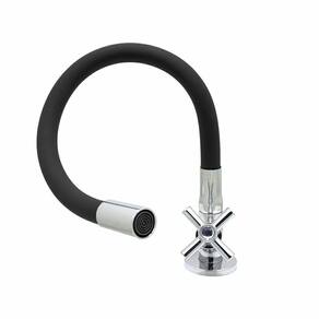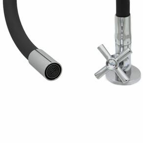 Torneira Para Cozinha De Mesa Bancada Gourmet Flexível Preto e Cromado 1/4 de Volta