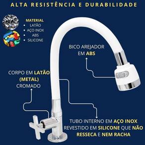 - Alta Resistência e Durabilidade – Estrutura reforçada com tubo interno em aço inox, revestido em silicone que não resseca nem racha, com arejador em ABS e corpo em latão cromado de excelente qualidade.