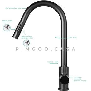 Com giro 360 graus, proporciona mais comodidade e um maior alcance de área em sua pia, assegurando mais mobilidade na hora de lavar a louça ou higienizar os alimentos, com funcionamento perfeito em baixa e alta pressão.