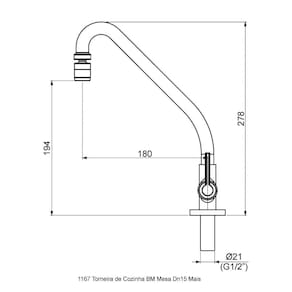 Indicada para instalação sobre a mesa em cozinhas residenciais ou comerciais. Compatível com sistemas hidráulicos de bitola 1/2" DN15, proporcionando melhor direcionamento do fluxo de água durante as atividades do dia a dia.