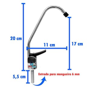 Torneira para Filtro Purificador De Água Tipo Faucet Bancada Torneira Para Filtro Purificador De Água Tipo Faucet P Bancada Composição: Metal e Plástico Alavanca Cor: Cromado / Preto Ideal para instalação de filtros e purificadores embaixo da pia Utilização em ponto de uso bancada Muito utilizada também para instalar em aparelhos de osmose reversa Conexão: espigão para mangueira 1/4