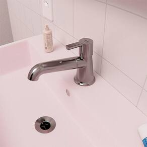 O corpo compacto é ideal para lavatórios menores ou bancadas com pouca distância até a prateleira/espelho. A bica baixa entrega o jato na medida certa para lavar as mãos com conforto, preservando a área seca da bancada e contribuindo para um visual organizado.