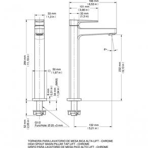 Torneira Para Lavatório De Mesa Bica Alta Lift Torneira para Lavatório de Mesa Bica Alta Lift Principais Características: